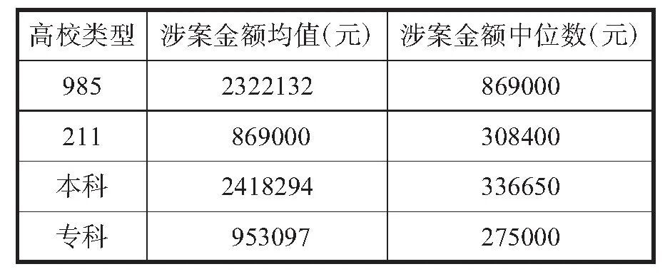表2 不同高校类型的涉案金额
