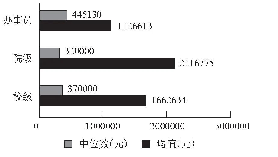三是公职人员手中权力的大小。公职人员个人获得更高报酬的能力,以及所拥有的权力的大小,则是影响其在“腐败市场”中兜售权力的两个重要的因素。前者主要依靠其讨价还价的能力,在“腐败市场”中具有一定的偶然性。而后者则在市场中具有相对的客观性,更容易影响其权力价格。一般来说,公职人员手中的权力越大,其所能支配的财富也越多,涉案金额也会越高。其中个人的职务级别是最重要的影响因素。当然,公职人员所在高校的类型也可能有一定影响。例如在高校类型中,“985”高校的行政级别一般来说比“211”高校的高,依此类推。总之,涉案人员的职务级别、所在单位的行政级别越高,权力越大,涉案金额就会越高。